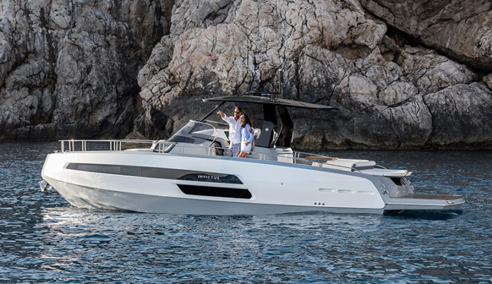 Elegance and sportiness meet to create a boat with a vibrant dynamism and the innate elegance of the Invictus Yacht style. The spaces are redefined in a hull that gives strength and momentum to a boat destined to sail distant waters, leaving itself to be admired for its uniqueness.